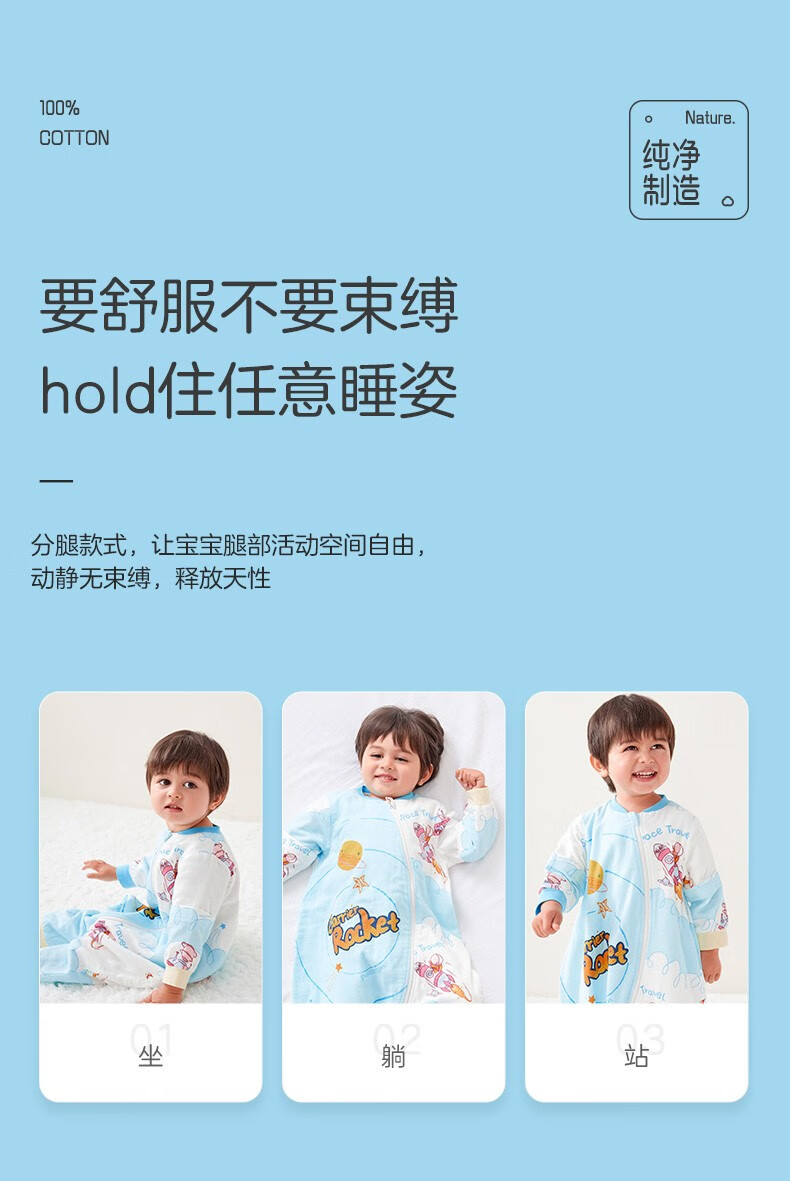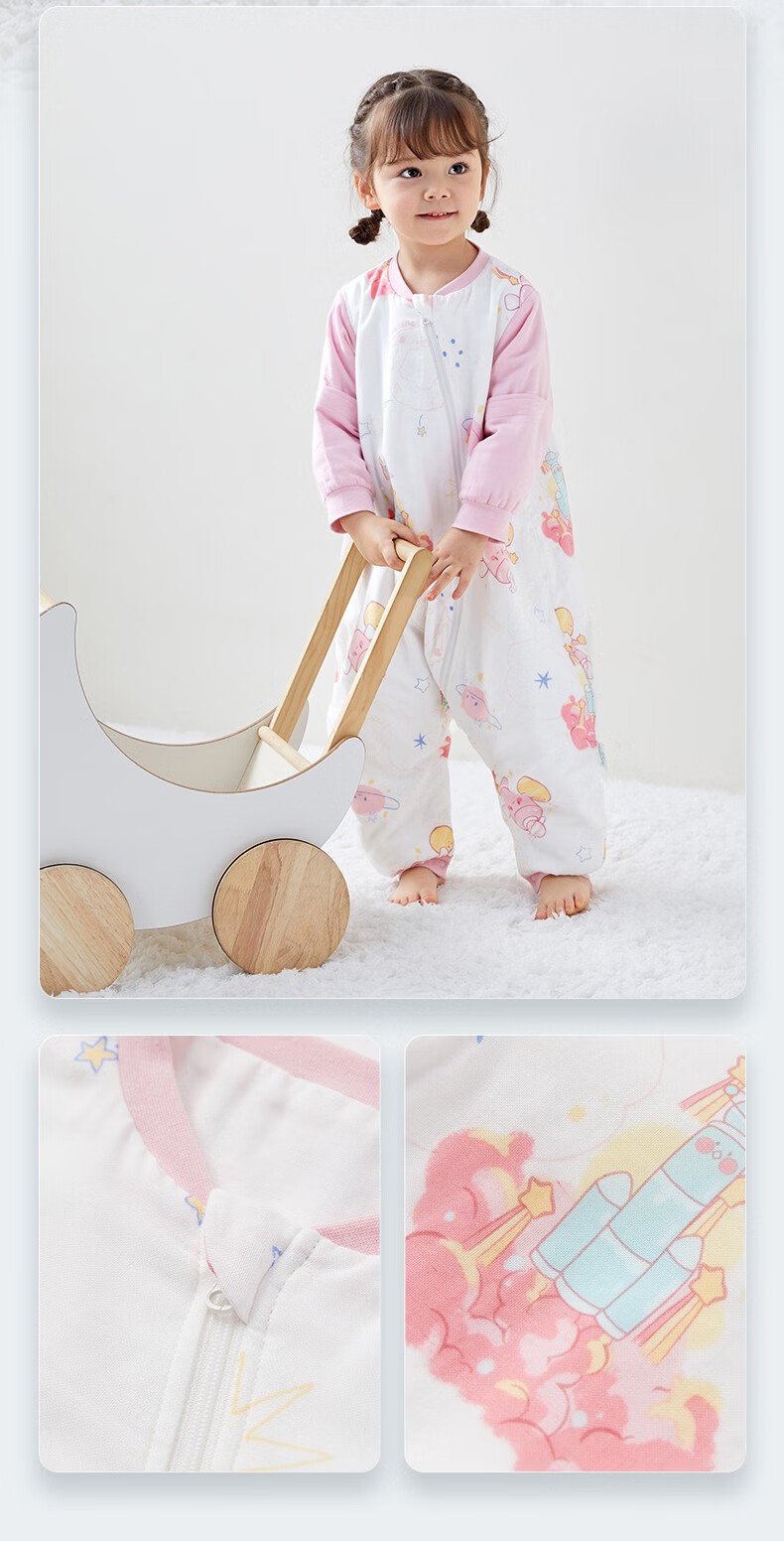 Cotton Age [China Aerospace Twelve Heavenly Palace] Baby Sleeping Bag Spring/Summer Pure Cotton Split leg Sleeping Bag Children's Baby Kick Shield Romantic Galaxy (Spring/Summer 24-27 Degrees) 90cm (suitable for height 90cm-105cm) [Image Price Brand