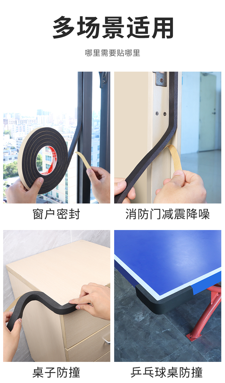 Milegie thickened sponge tape EVA single-sided strong black foam tape foam shockproof buffer Safety Baby Edge Corner Guards window sound insulation door frame gap sealant strip door seam seal strip 10mm wide * 2.5m long * 10mm thick [one roll]